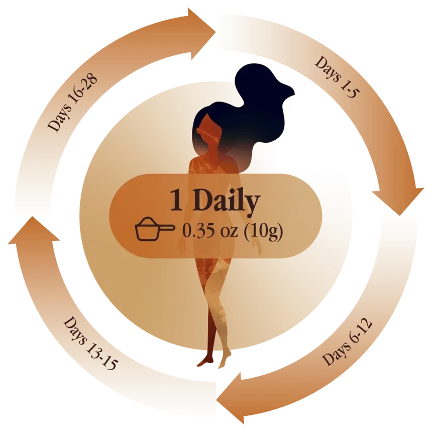 No apps. No tracking. No guesswork. Each pouch runs out when you should switch, plus one extra scoop per phase for your unique cycle length.