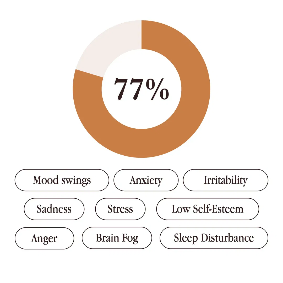 77% of women report anxiety, mood swings, and disrupted sleep during their cycle.¹