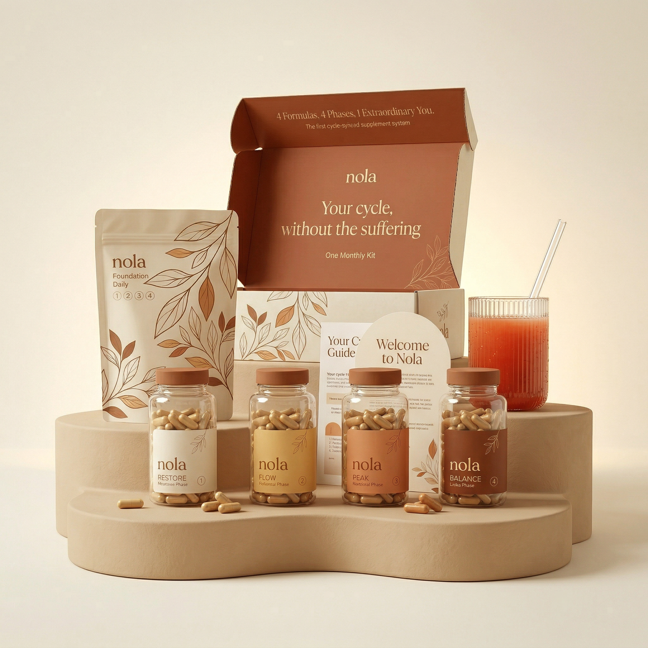 Your body's needs change weekly. Now your supplements do too. One kit. Four phases. Synced to your cycle.